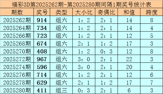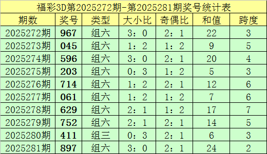 其中大小比3:0,奇偶比2:1,和值24,跨度2。