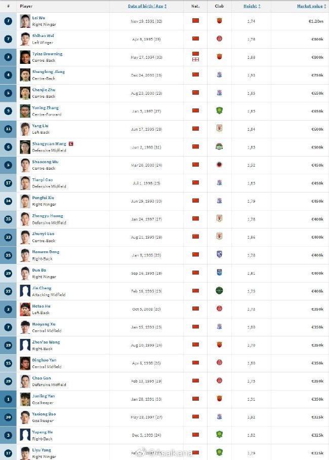 《转会市集》更新了2024年中中超球员身价,在国内球员中,武磊以120万欧元的身价陆续保捏第一,韦世豪、蒋光太以80万欧的身价并排第二。